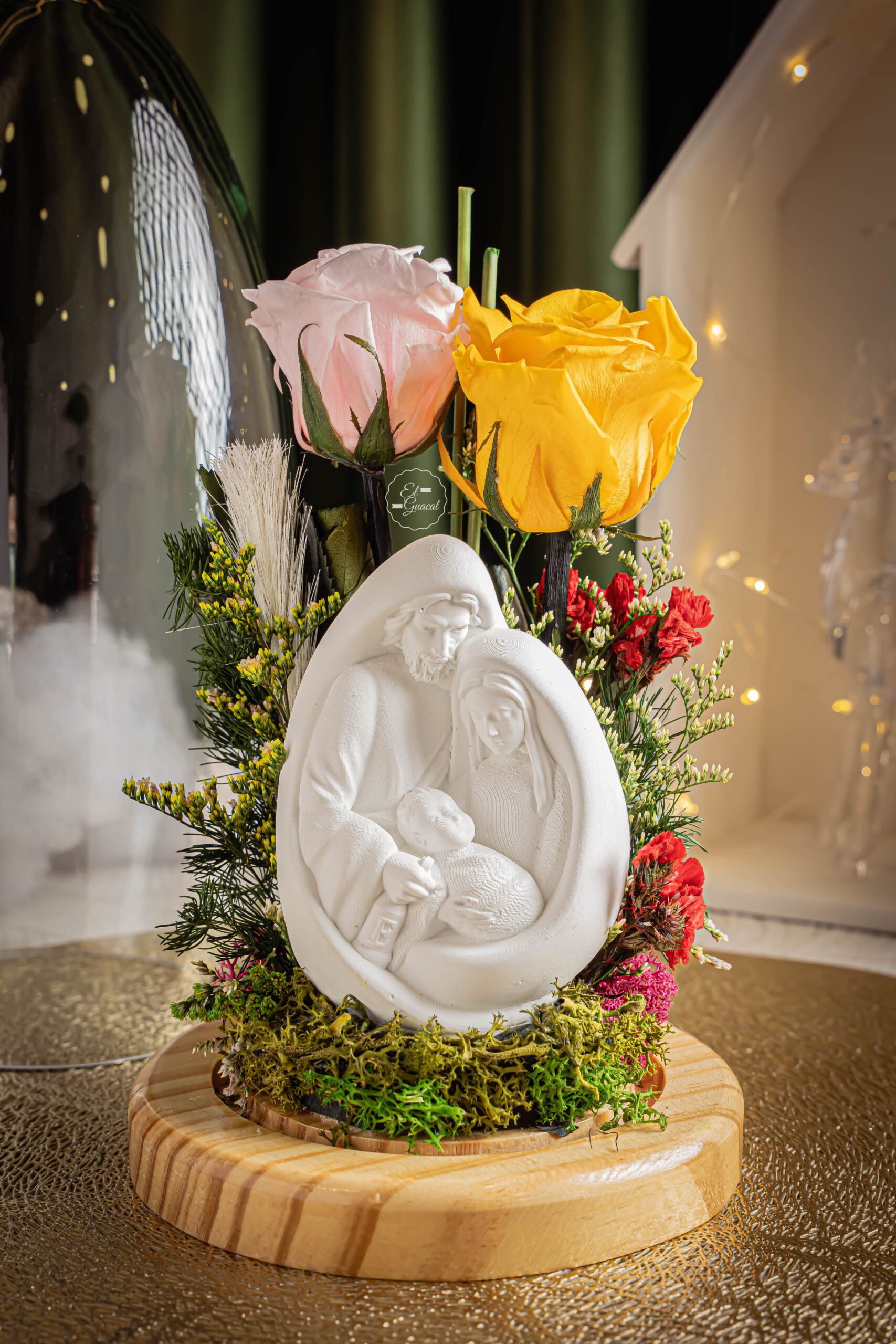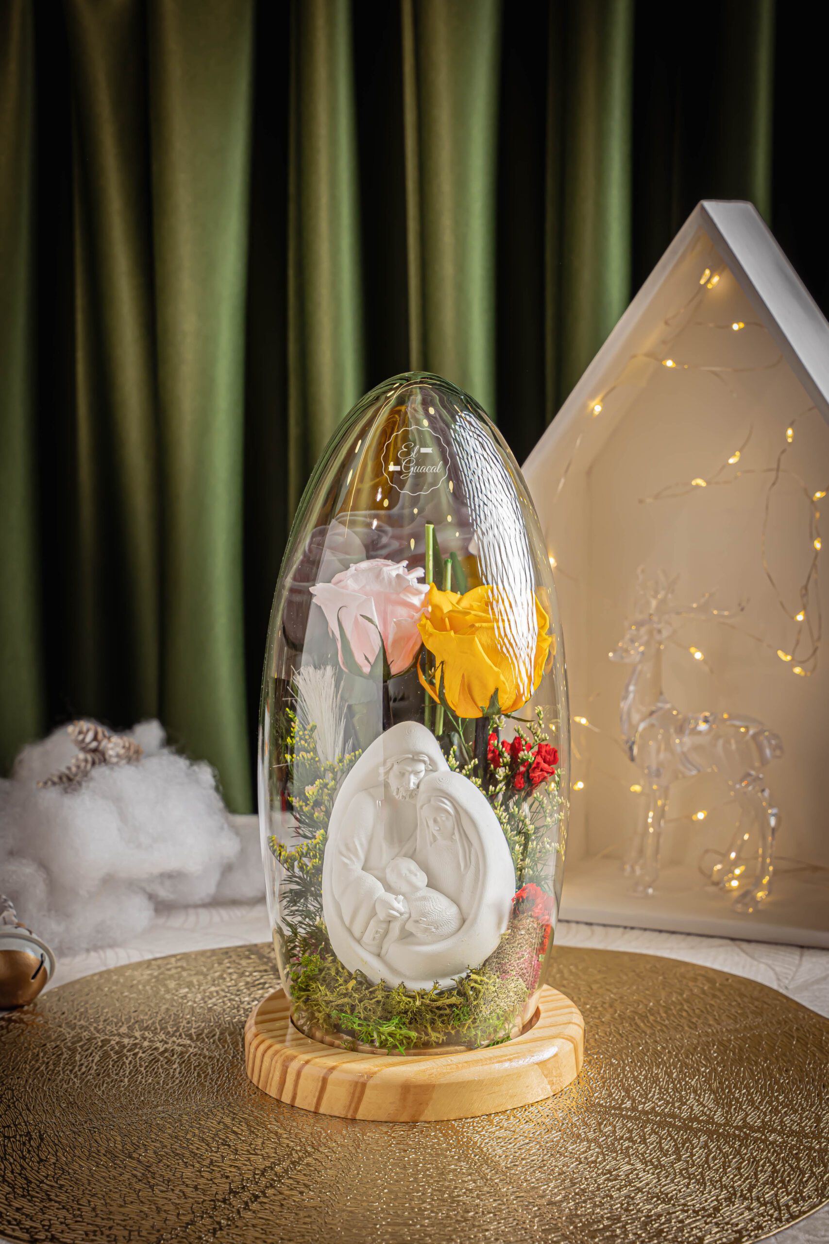 Jardín Sagrado -Cápsula con sagrada familia y rosas preservadas. -Tarjeta con mensaje y de/para.